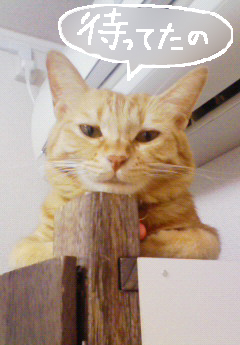 時にはドアの横の棚の上でも待っています。
