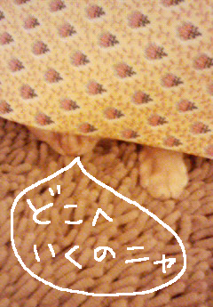 出かけようとすると、ローテーブルの下から。