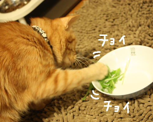 キャベツもレタスも興味ないけど、水菜は好きらしい。