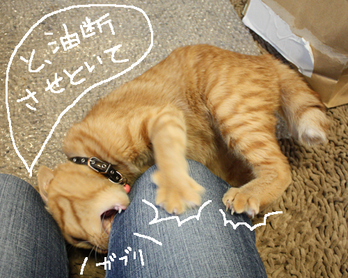 ひたすら膝に攻撃を加える、我が家の猛獣うにだったのでした。。。