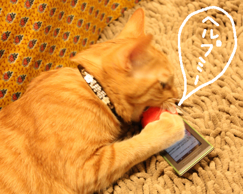 初めはクンクン、その後ペロペロしだした、うに。