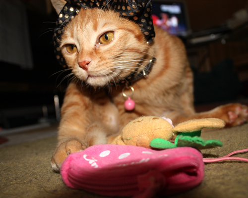 抱っこ大好き、付きまとい(家庭内ストーカー?)が趣味。かぎシッポ。