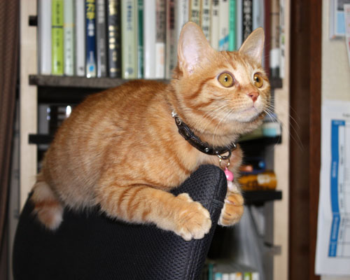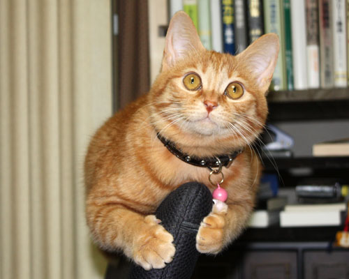 抱っこ大好き、付きまとい(家庭内ストーカー?)が趣味。かぎシッポ。