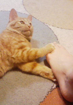 抱っこ大好き、付きまとい(家庭内ストーカー?)が趣味。かぎシッポ。