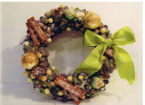 なんか、マニュアルとかあるのかと思ったら、無くて、枠になる木の枝を編んだものが1人ひとつと、沢山置いてある素材(松ぼっくりとか、オーナメントとか)の中から自分で好きなのを作りましょう的なお教室だったので、はじめは頭を抱えましたが、やっとこ出来ました!